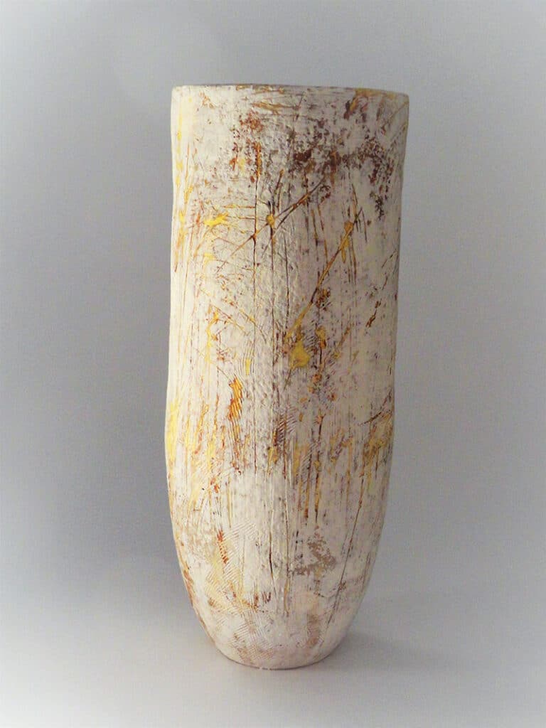 Una parte de mi obra es alfarería. Me gusta ensamblar piezas realizadas al torno, hacer obras de formato grande, jarrones, generalmente.