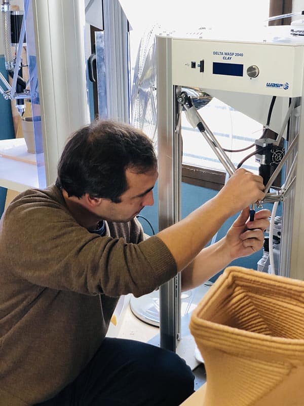 De la mano de los mejores profesionales y la tecnología más avanzada hemos puesto en marcha el primer laboratorio 3D dedicado en exclusiva a la cerámica. La investigación y la prueba de materiales cerámicos ha sido nuestra misión durante estos últimos meses. Contamos para ello con dos máquinas de impresión 3D de la marca WASP, un equipo profesional al mando y un taller de cerámica a nuestra disposición.