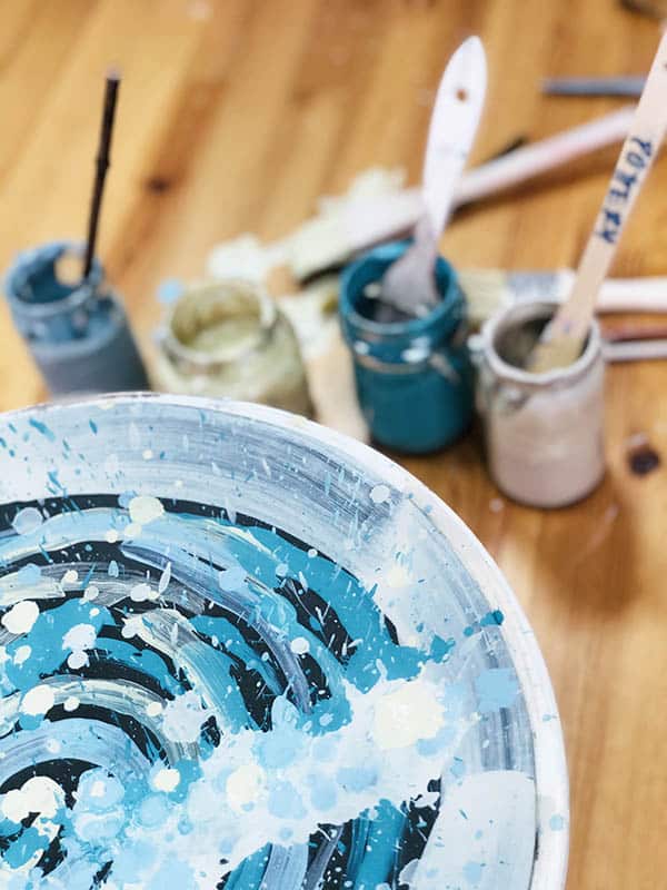 A continuación hemos aplicado nuestros tres colores de engobe con pincel y mediante goteo. Una forma sencilla y diferente de dar color a nuestras piezas ¡La verdad que ha quedado estupendo!