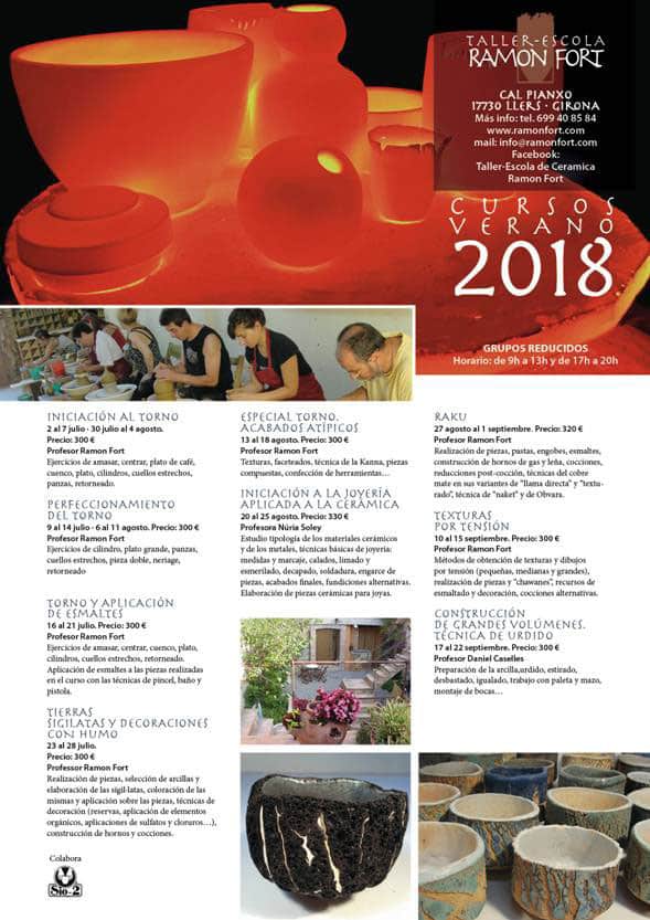 El prodigio y dominio del torno gracias a Ramón Fort. Sus talleres de verano son muy apreciados por los amantes de la alfarería. Una semana de inmersión para aprender a tornear, perfeccionar la técnica, crear formas atípicas o aprender a hacer esmaltes especiales. Además, podrás también aprender joyería con Nuria Soley y la técnica de urdido con Daniel Caselles.