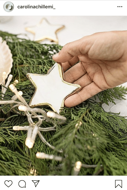 Carolina Chillemi. De nuevo preciosos colgantes, esta vez con forma de estrella y con lustre de oro, como decoración. No es la primera vez que Carolina Chillemi hace adornos para Navidad.
