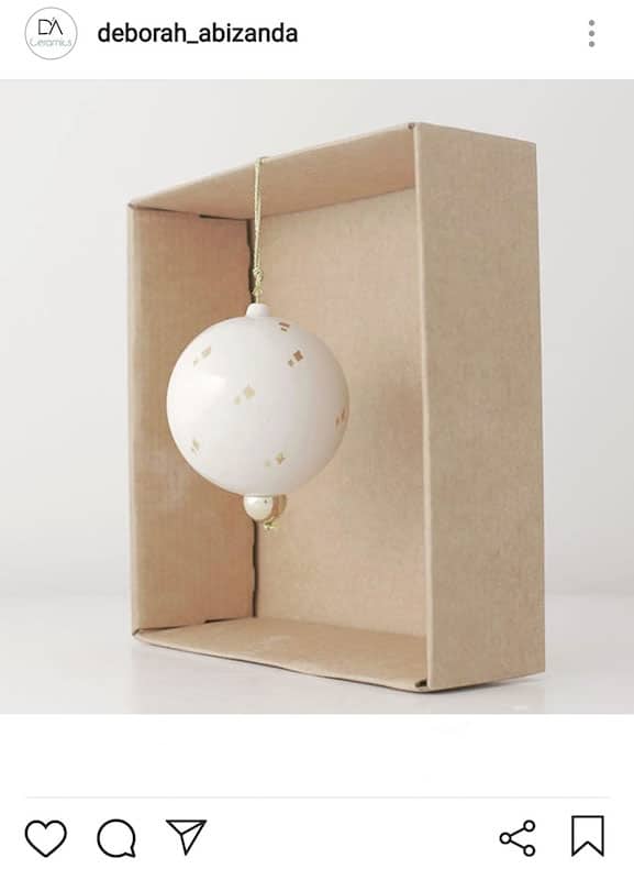 Déborah abizanda Cerámica. Las bolas de Navidad también han inspirado a la ceramista Déborah Abizanda. Hechas de porcelana y pintadas a mano, diseños muy frescos que van desde topos de colores, hasta estrellas luminosas o pequeñas gotas de oro.