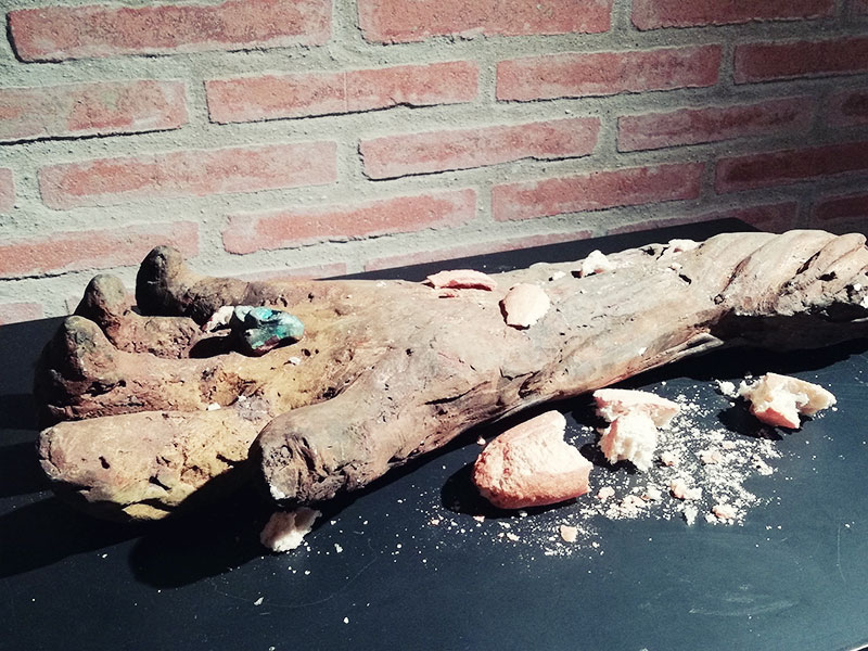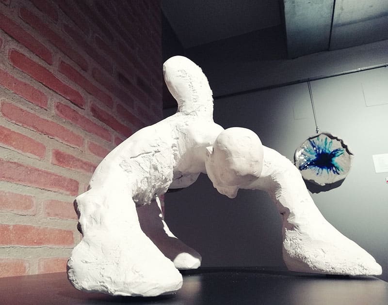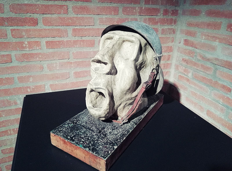 Lecturas, poesías, sucesos que han conmocionado al artista Domingo Huertes o bien le han hecho reflexionar para posteriormente denunciar. Así es el caso de la pieza “Homenaje a Edgar”, hecha en escayola, que referencia un caso de negligencia laboral, ocurrido en 2014, hace apenas 4 años. Un hombre de Bolivia que trabajaba en una fábrica de pan de Gandía sufrió un terrible accidente y la máquina succionó su brazo. No tenía papeles, trabajaba de forma ilegal, y su patrón le dejó tirado a 200 metros cerca de un hospital, para no tener que responsabilizarse de su accidente. Sucesos de hoy, tan actuales, como es la obra de Domingo Huertes.