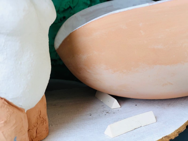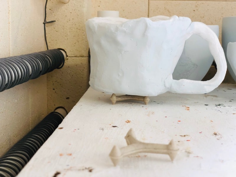 Cuando las piezas están esmaltadas en su totalidad, es necesario poner un soporte para que no se peguen a la placa del horno. En este caso utilizamos soportes tipo trípode.