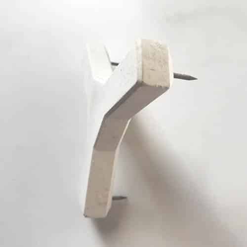 - De cerámica. Trípode cerámico refractario con pinchos metálicos para elevar piezas totalmente esmaltadas por la base.