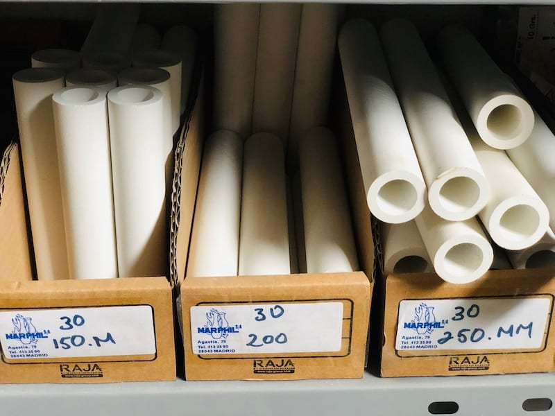 Otro elemento imprescindible para cargar el horno son los tubos de soporte que se colocan entre placa y placa, creando los diferentes pisos. Son el aliado ideal para crear el «tetris» perfecto de piezas en tu horno. Y es importante tener diferentes alturas de estos tubos. En ocasiones unos pocos centímetros supone poner una placa más y por lo tanto, meter más piezas. Están hechos de material refractario.