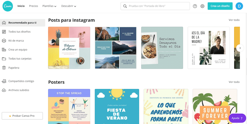 Canva es la herramienta por excelencia para crear presentaciones, carteles, tarjetas, infografías…