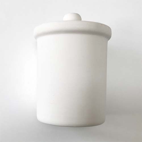 Bote con tapa Bizcocho – modelo RDS cocido a 1000ºC para decoración a baja temperatura. Aplica esmaltes cerámicos directamente o decora con óxidos colorantes para posteriormente vidriar la pieza con un esmalte transparente.