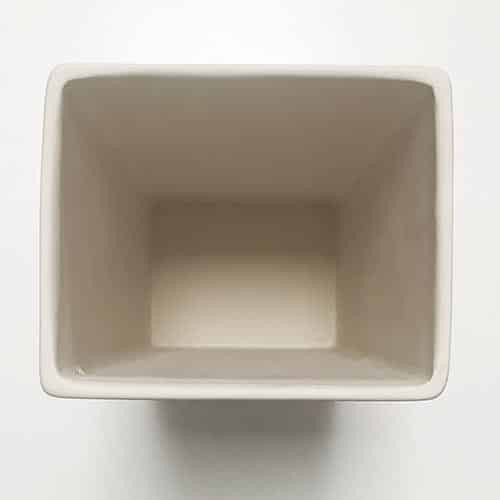 Jarrón cuadrado bizcocho cocido a 1000ºC para decoración a baja temperatura. Aplica esmaltes cerámicos directamente o decora con óxidos colorantes para posteriormente vidriar la pieza con un esmalte transparente.