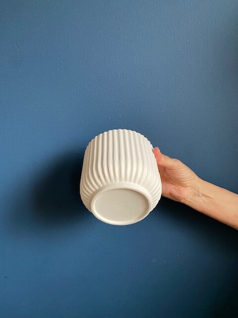 Maceta de bizcocho de moderno diseño acanalado vertical.
