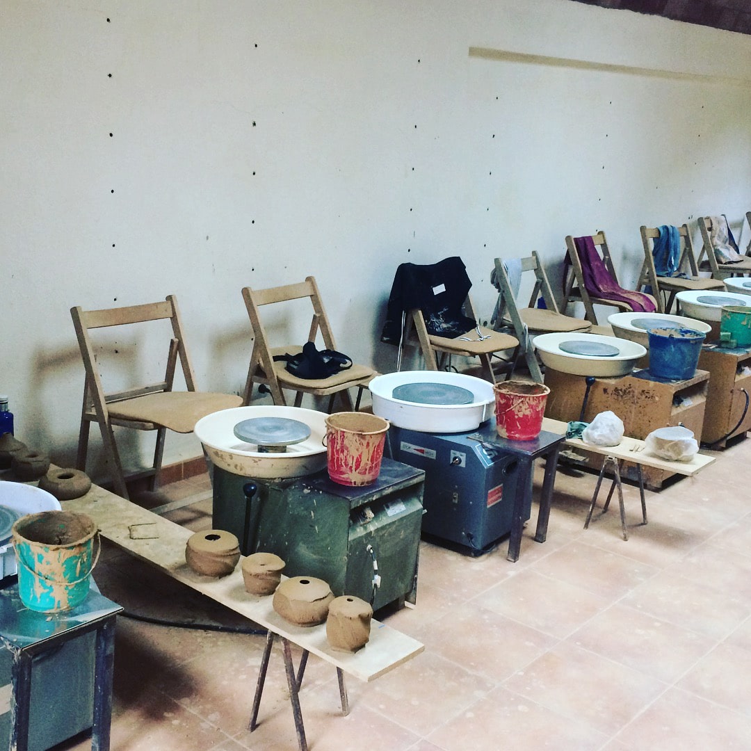 ¡Y el espacio! Perfecto para hacer una inmersión completa al torno. Las instalaciones están disponibles 24 horas al día. Se respira, se desayuna, y se cena cerámica, ¡si uno quiere! Hay que decir, que comer, también se come excelente. La experiencia es única.