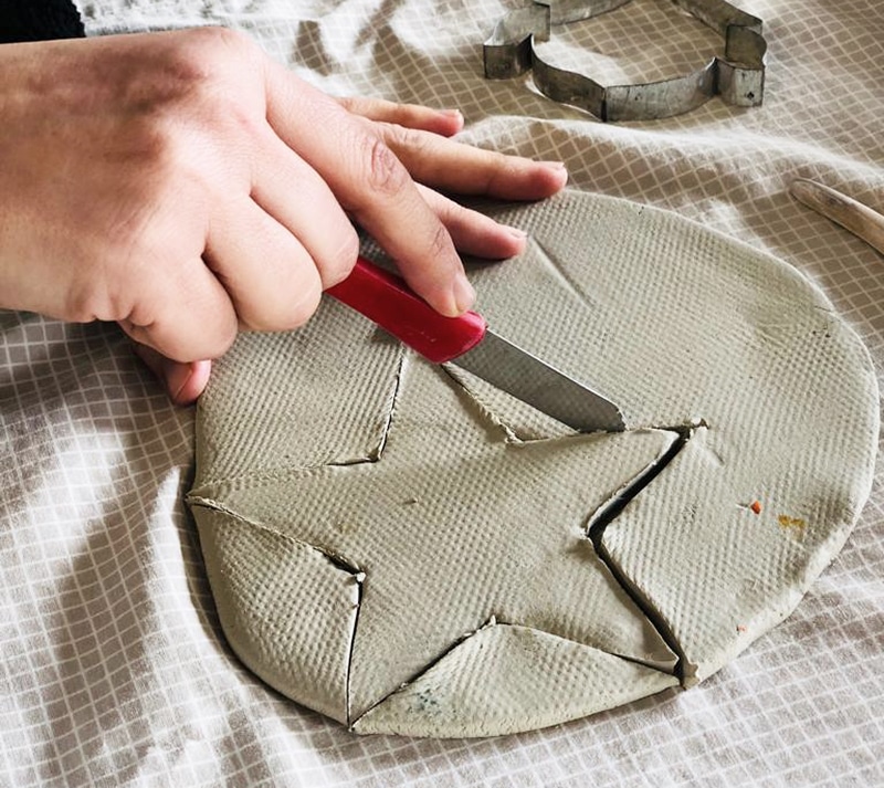 Realizamos unas sencillas piezas en barro blanco de baja temperatura. Como las Navidades están cerca, hemos hechos unas bonitas estrellas con ayuda de una plantilla. También podrás utilizar un corta pasta para realizarlas.